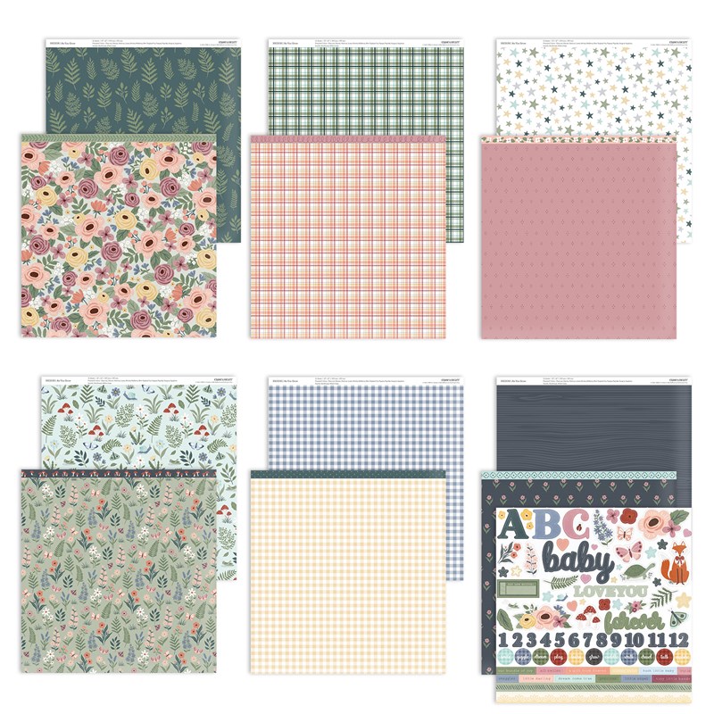I really liked how versatile this collection is. All the patterns, florals, and images can be used for so many projects that are not baby-related. On my page, the background gingham paper, the charcoal woodgrain, and the plaid paper are all from that As You Grow paper pack.
