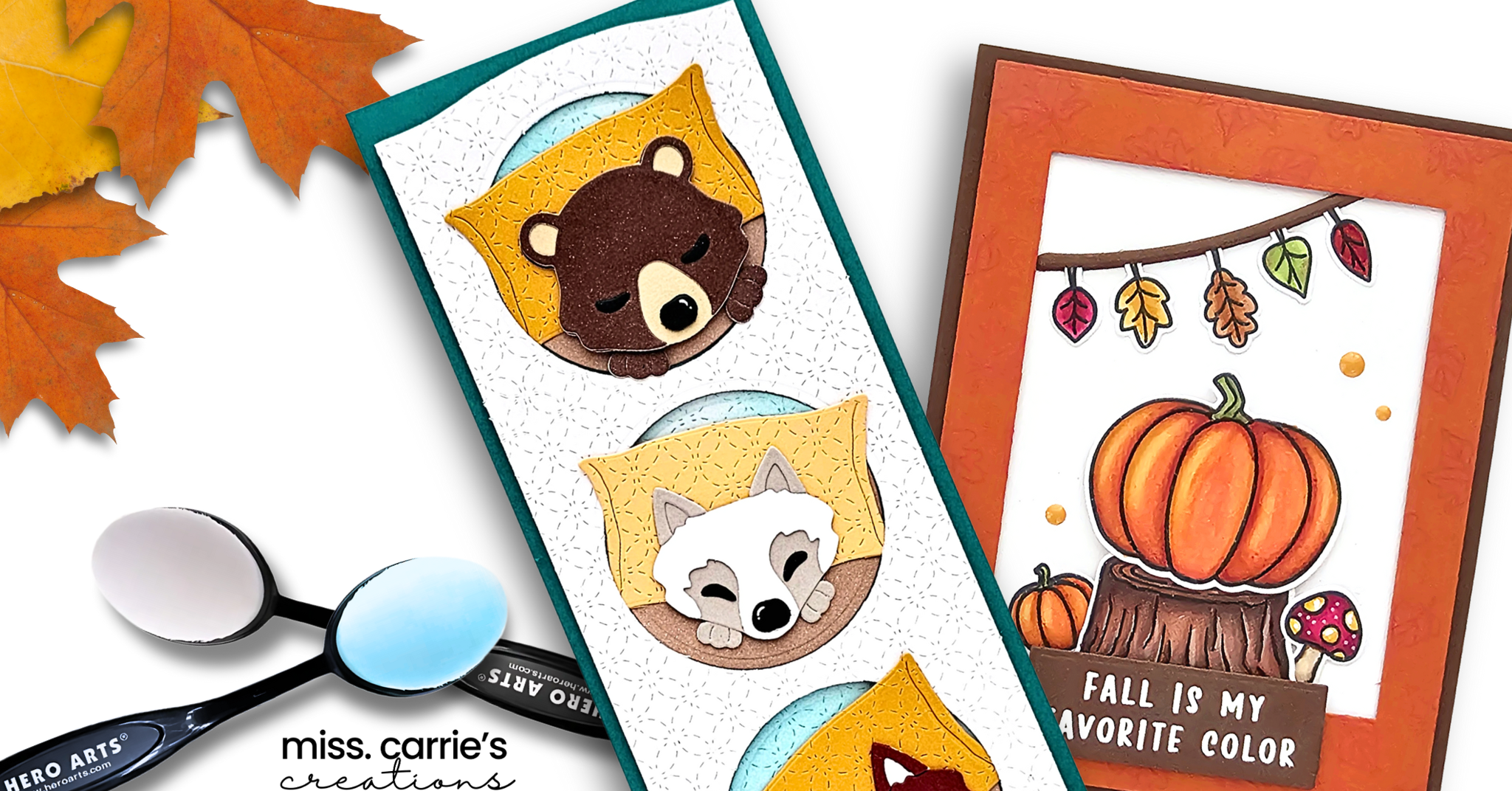 hero arts september kit, fall in the forest kit, hero arts subscription box, cozy critters die set, fall cardmaking ideas, handmade fall cards, autumn card kit, alcohol marker coloring for cards, slimline card ideas, baby card die cutting, hero arts inspiration, card kit subscription, treehouse die cut, whimsical critter stamps, hero studio september 2025