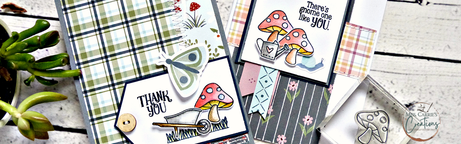 So…. I really had to giggle when I won this mini garden gnomes stamp set at virtual convention. If you have watched me on Craft Roulette, you know that I am not a fan of gnomes. Give me a fairy, a brownie, a troll, even a pixieโฆ.but gnomes are not my favorite.