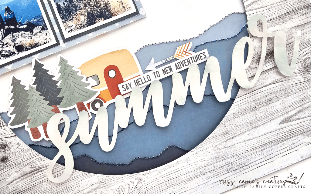 This captivating Summer Mountain Memories scrapbook layout was crafted using a collection from Cocoa Vanilla Studio. Some of the items I used were leftovers from my NJFB kit while others were purchased from the A Cherry on Top.
