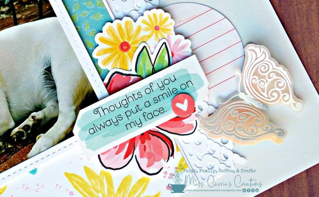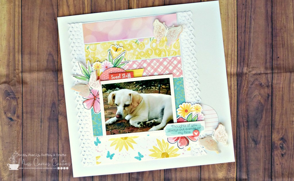 How cute is she??!! This layout describes our little fur baby perfectly.โฅ She loves to lay in the garden, soak up the sun, and, walk through the flowers.