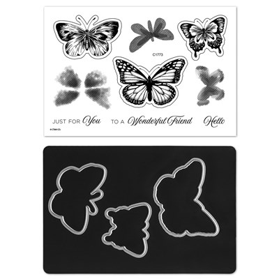 I love how that little butterfly from the Butterfly Friendship set is tucked under the rose image – making it appear almost ✨magical✨ as it starts to fly off the card. This stamp set has a delightful watercolor background for each image and a matching die set that makes cutting out the images a breeze.